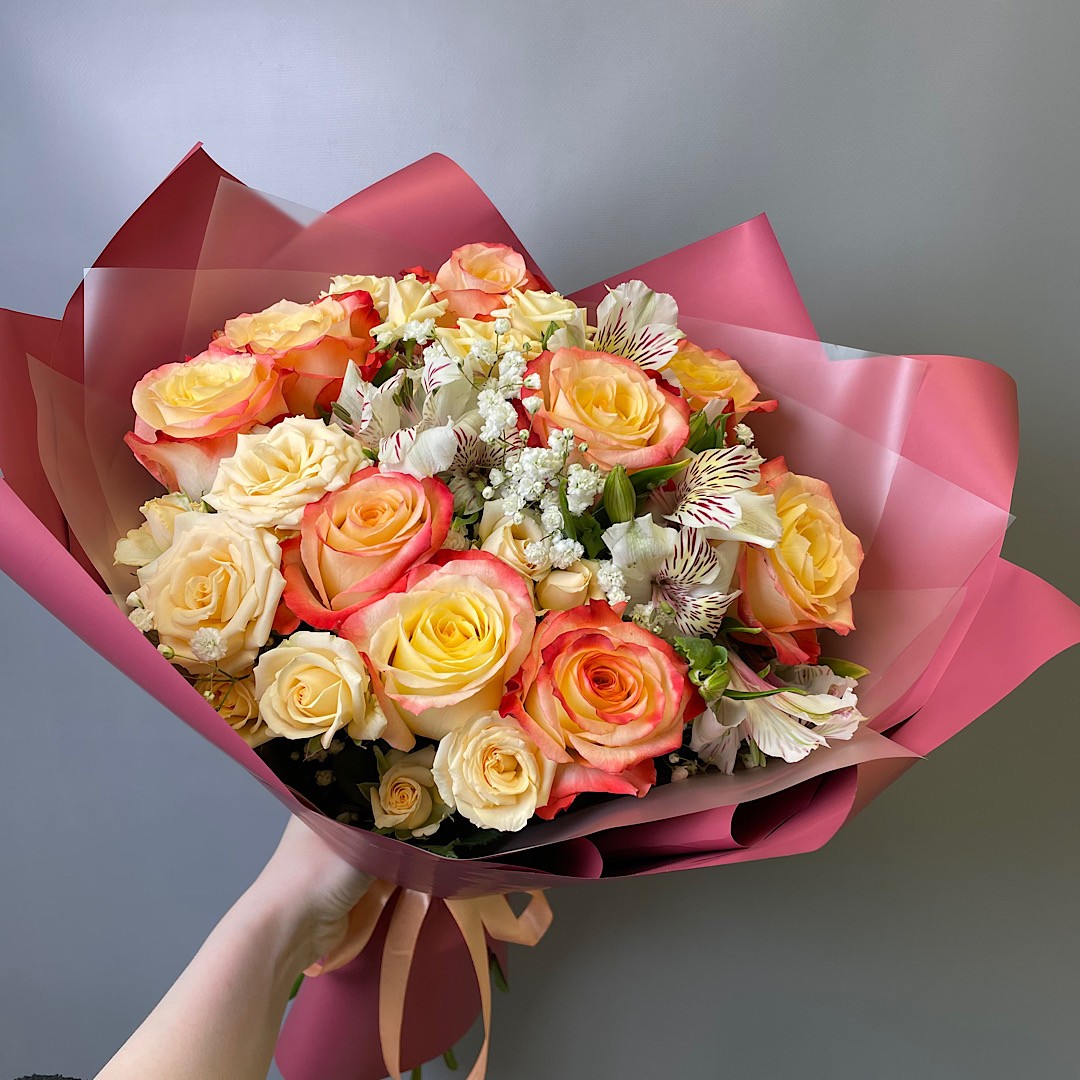 Роза 40см эквадор - 9Гипсофилла - 1